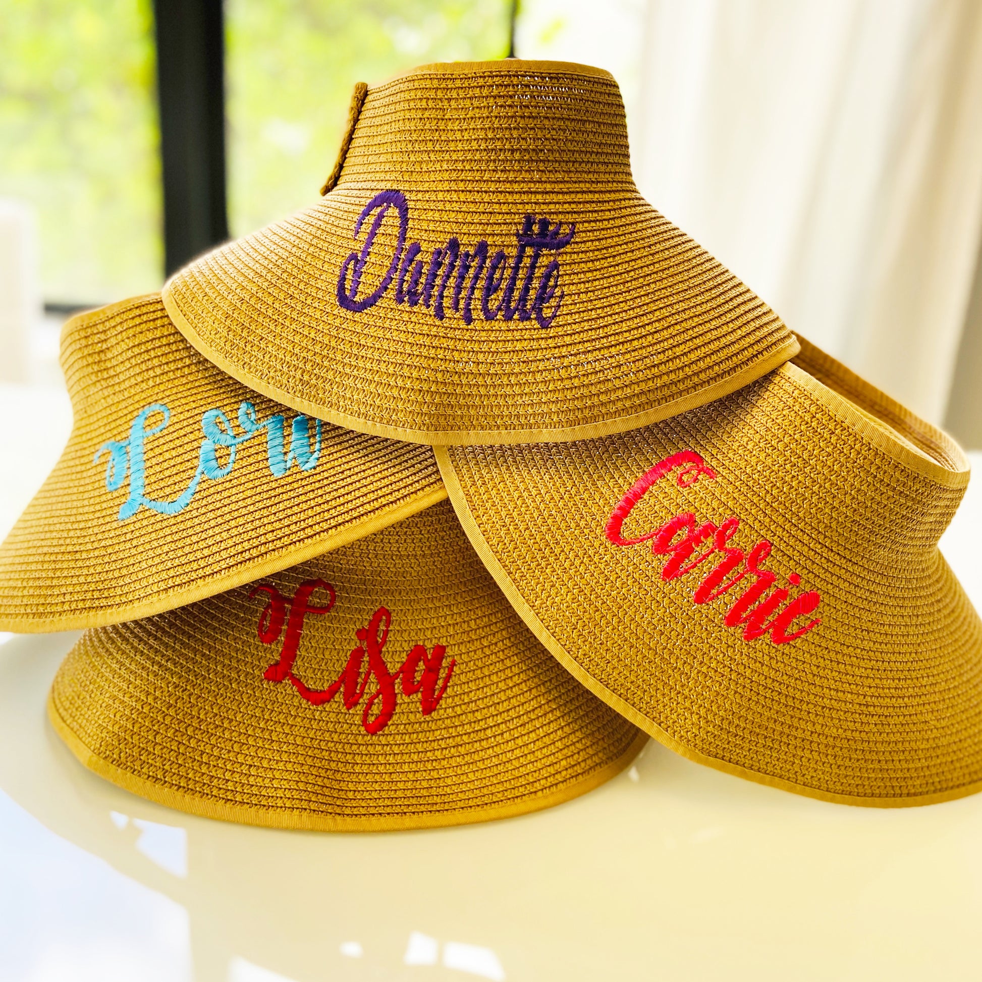 Beautiful Straw Visor , Embroidered with your monogram or name in any thread color you choose!